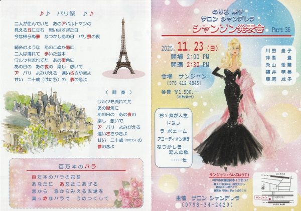2025年11月23日日曜日14時 神戸東灘区にある「サロン・サンジャン」にて堺フェニックスロータリークラブのシャンソン同好会の発表会が開催されました。