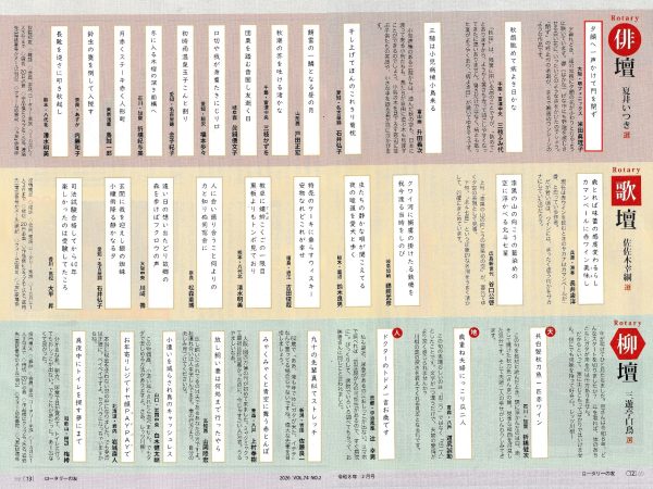 2月 1日 令和8年2月号ロータリーの友 俳壇 2月号ロータリーの友の俳壇のページに米田眞理子パストガバナーの作品が投稿され、特選されました。(ロータリーの友より抜粋) 「 夕顔へ 一声かけて 門を閉ず 」 最優秀作品(長谷川 櫂選 評価あり)